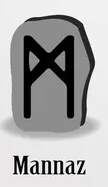 Mannaz representa al ser humano, el yo, la identidad, la relación con los demás, la humildad, la conciencia de uno mismo y el vínculo social.